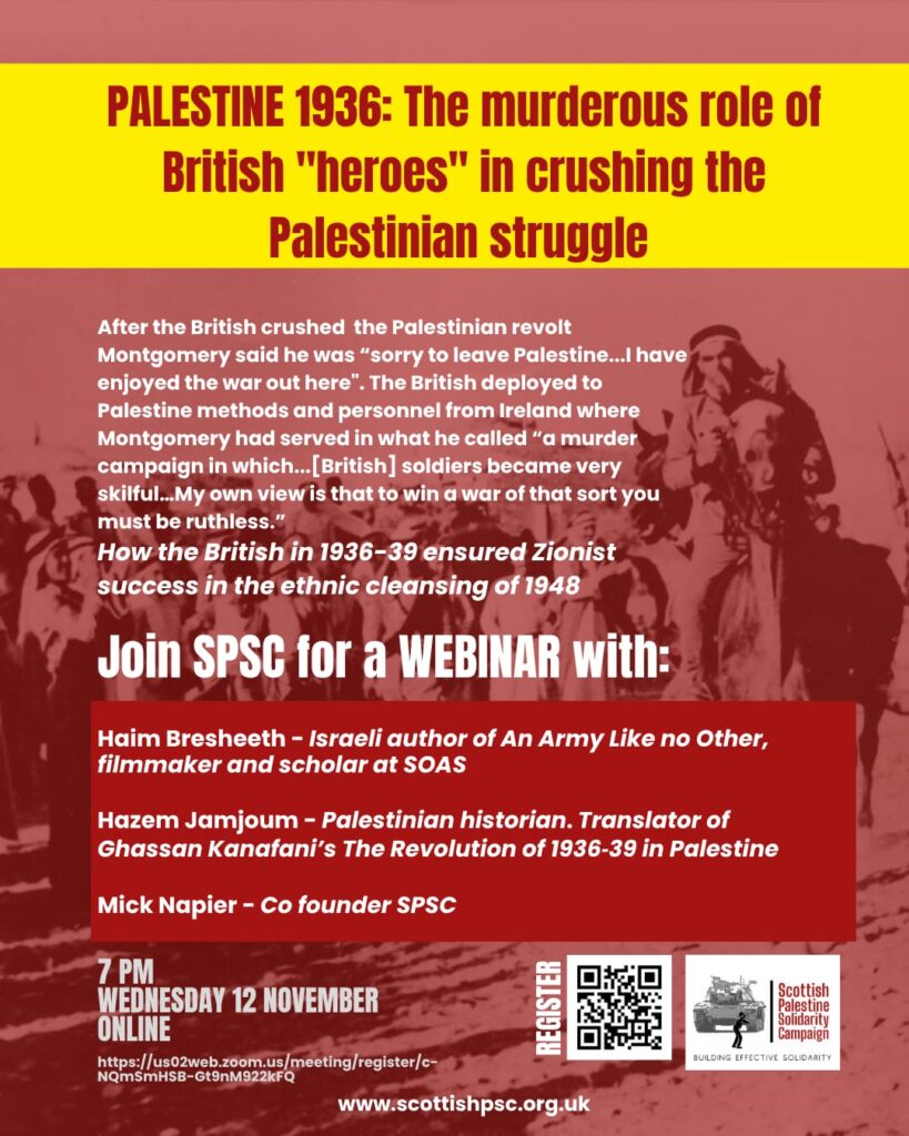 Join Haim Bresheeth, Hazem Jamjoun, and Mick Napier for a talk and discussion on how the British in 1936-1939 ensured Zionist success in the ethnic cleansing of 1948.