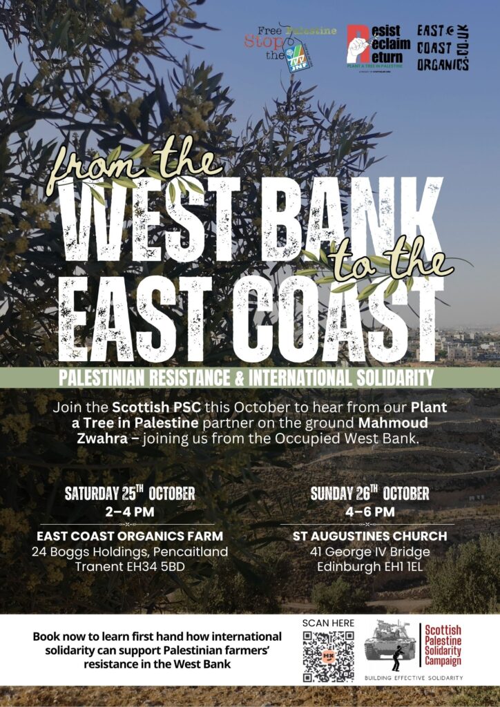 For the past two decades, Mahmoud has been deeply involved in non-violent popular resistance, particularly protests against the construction of the Israeli apartheid wall, which threatened to cut through his village Al-Masara village. Today, illegal settler colonies, violent settlers and military are attacking Palestinian families, destroying their homes and taking land. You can also find out about the Stop the JNF Plant a Tree in Palestine project that SPSC is partnering with Mahmoud.