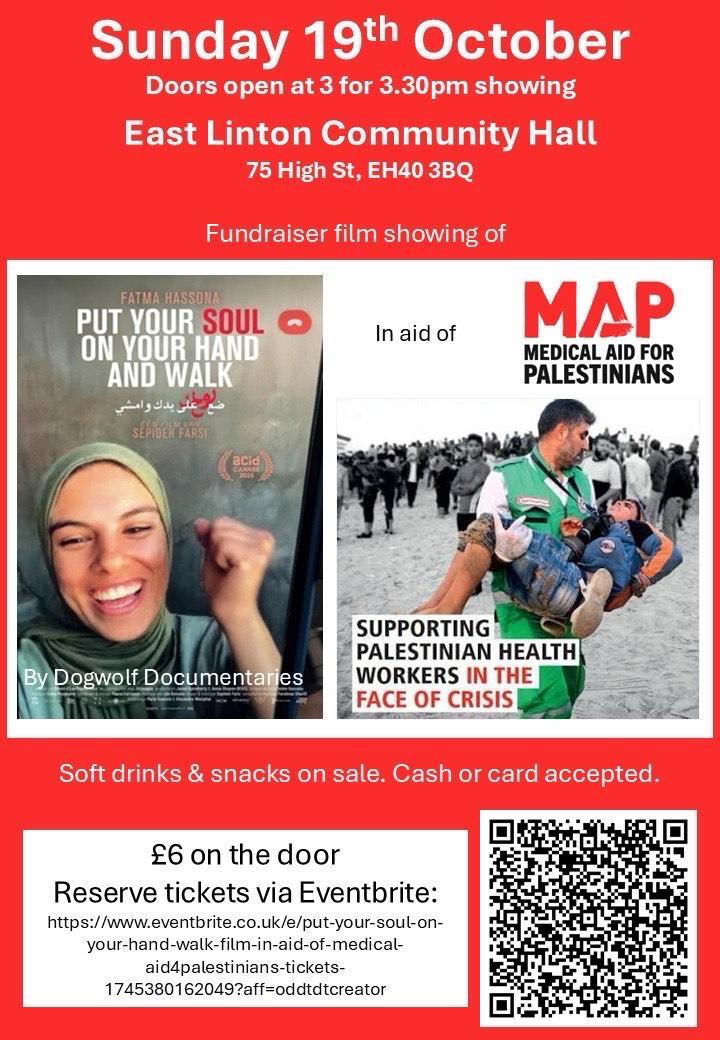 Opportunity for the people of East Lothian to Support Medical Aid for Palestinians.