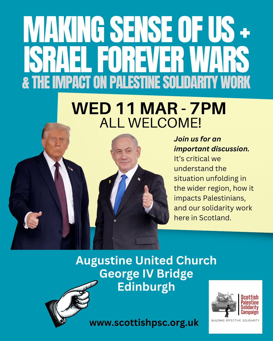 Making sense of US + Israel forever wars & the impact on palestine solidarity work WED 11 MAR - 7pm, Augustine United Church, Edinburgh Join us for an important discussion. […]