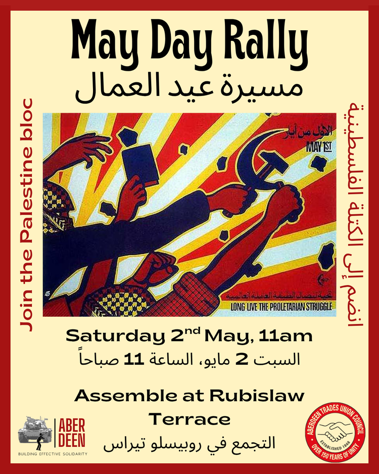 Join us on May 2nd as we march once again through the streets of Aberdeen, in solidarity with Palestine and oppressed peoples around the world. International Workers Day is a day for solidarity with workers around the world, to celebrate victories against oppression and stand with those facing injustice. The issue of Palestine is the […]