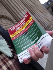 Congress voted to reaffirm the STUC’s commitment to Boycott, Divestment and Sanctions (BDS), including Apartheid Free Zones (AFZs) and for existing commitments to be fully implemented.