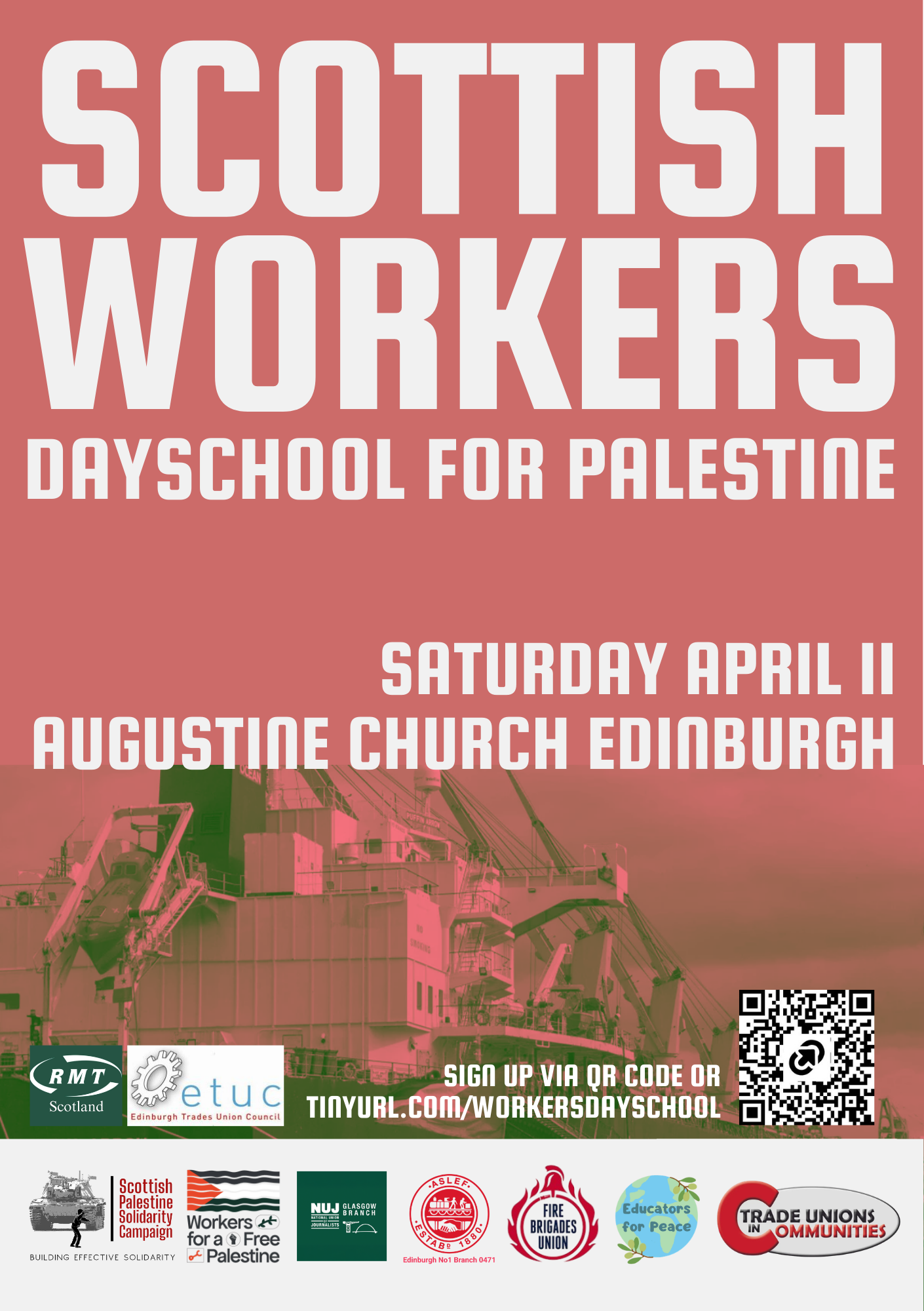 - Learn from experienced organisers in different sectors in Scotland and from organisers of successful worker-led actions on Palestine in different countries,